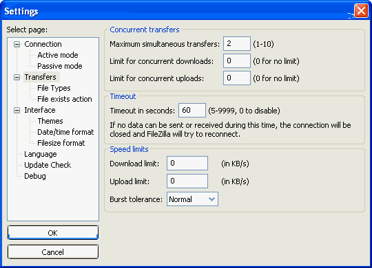 (Tech Talk: If you are having problems with the connection timing out and reconnecting go to the Edit/Settings in the menu and change the timeout setting to something larger, in this case I have set it as 60 seconds.)