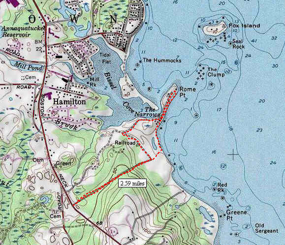 Topo map showing the short walk to the end of Rome Point.