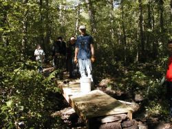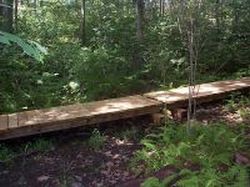 This year, our National Trails Day project was the replacement of several bog bridges with boardwalks in a swampy area of the Tri-Pond Trail in Wakefield. Twenty-five volunteers worked a total of 112 hours to build 9 boardwalks. This project was especially challenging since the entire area was very muddy with a lot of sections actually under water. A special thanks to Maria Earley and Chris Shafer for the great job they did organizing this very successful project.