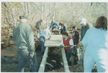 Our final project of the year was the building of three sections of boardwalk over a stream at the Tri-Pond trail in Peacedale, Rhode Island. Twenty-nine volunteers spent a total of 163 hours working on this project.
