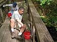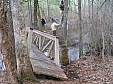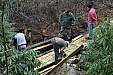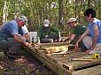 the trail, building a boardwalk bridge over a deeply eroded area,