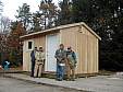 This toolshed cost approximately $3000 to build the structure, plus an additional $500 to outfit the interior of the shed with various necessities. The $3000 structural cost was covered by a grant the Narragansett Chapter got from the Rhode Island State Trail Advisory Committee (federal money) and the $500 interior costs was covered by a special project fund grant we got from the AMC. The chief volunteers who constructed the shed and outfit the interior included Henry Cruciani, Roy Benoit, Jim Dowling, and Bob Holcombe. Jennie Crooks, Bob Holcombe, and Martha Cruciani performed the painting of the shed.