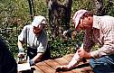 Several trails volunteers have been busily dedicated to two projects – planning the trail and the refurbishing of the donkey shed. The crew readily took on tasks – walking the field, noting GPS coordinates, and flagging the trail. The lower loop is almost developed with trimming and clearing dead fall being among the last tasks. Clearing huckleberry and monitoring the pond area for trail wetness is a future chore.