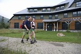 One day one a cold front brought wind, freezing rain, and 50 mph gusts. The entire south side of the Highland Center was sheeted in ice. The girls were less than thrilled about going out but they were game for a hike up Mt. Willard (2.5mi round trip - 900’ elevation gain). Within 20 minutes thunder rolled in and there was a race back to shelter at the trail head. After 15 minutes of thunder, lightning, rain, hail, wind, and a few power bars the soggy crew crossed the clearing back to the Highland Center where the girls excitedly told anyone who would listen about their adventure.