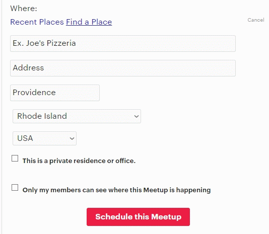 At this point you can Schedule your Meetup. All other options will be default but can be edited once your event is posted. This includes editing the Google Map of the location.
