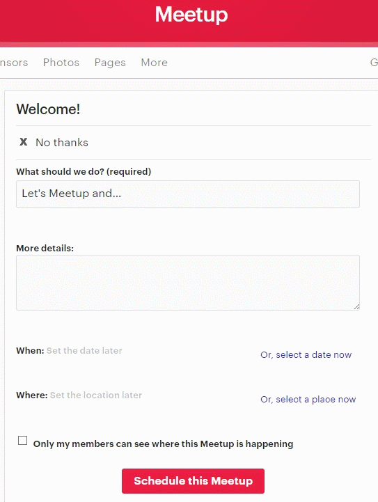 Where you can start with the "Schedule a Meetup". This method will give you all the basics, plus additional options.