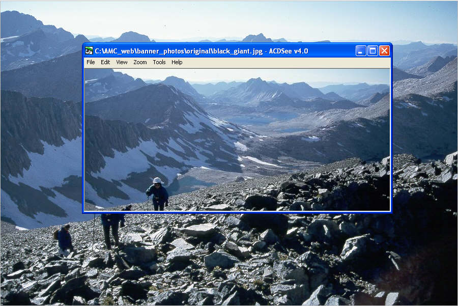 The web site uses an image that is displayed from a random selection among several banner images. These are the ones that have the watermark on them “Appalachian Mountain Club” in green text. (Update: now the AMC logo.)Your photographs or art work will have it's own page for banner images and will be displayed in random order whenever the front page is refreshed or is reloaded. That is what occurs now with the current banner images. Your collection of images will be used on the web site depending on the quality of the images, how many images you have, and how many other people submit image collections.