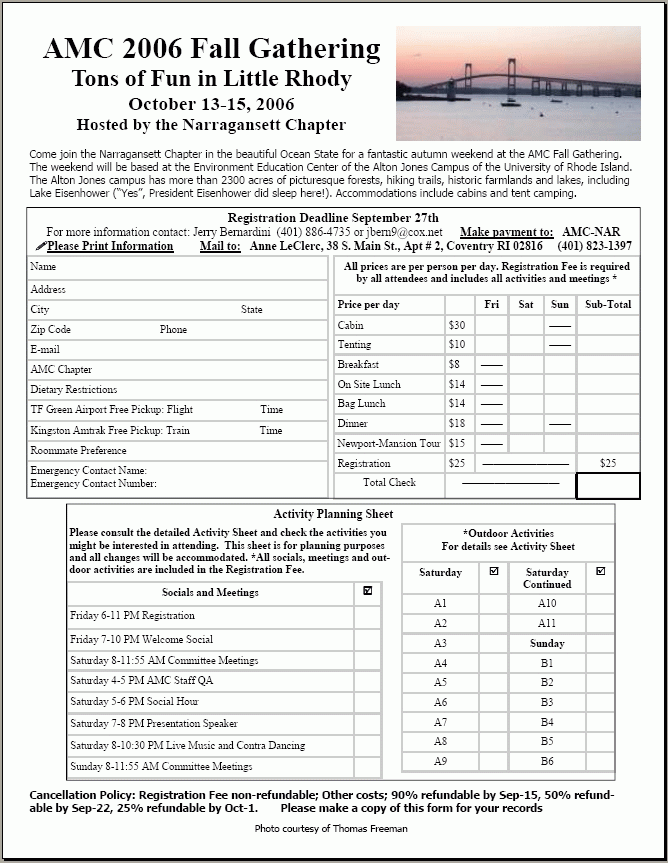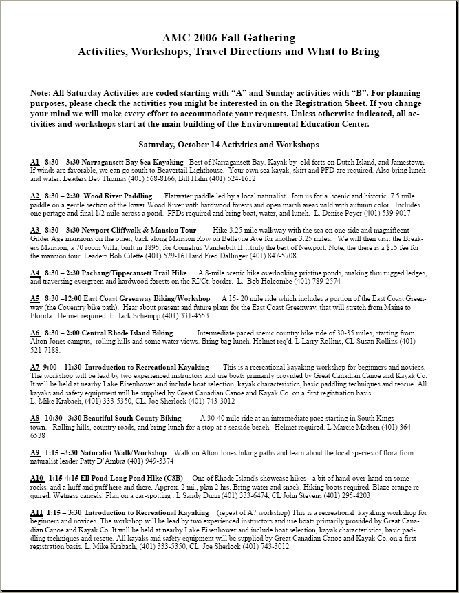 Please mark your calendar for October 13-15 for the 2006 Fall Gathering. The “gatherings” are special events that happen twice a year, and each one is hosted by a different chapter. They draw members from all other chapters. The 2006 Fall Gathering will be hosted by our chapter. The event will be filled with fun activities, various meetings and educational workshops and entertainment (and, of course, great food). All members are encouraged to attend.