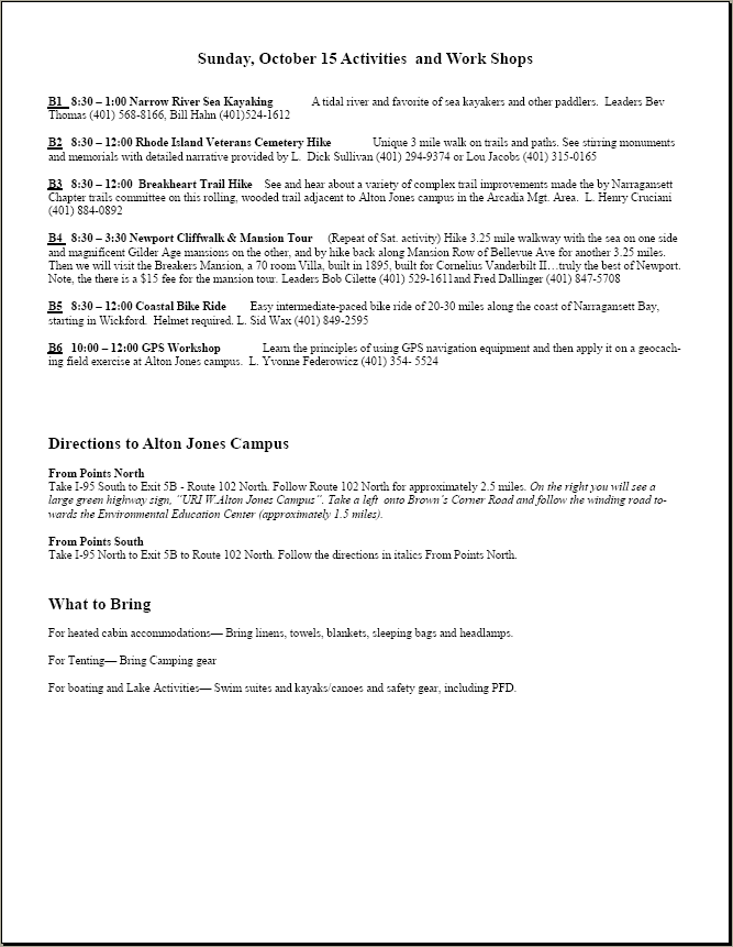 suggested. Helmet req’d. L. Jack Schempp (401) 331-4553