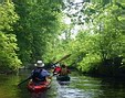 A great group of folks paddled the Ten Mile River in Pawtucket on Saturday May 23, led by Antoinette & Herrick. We met at the Pawtucket Country Club, where we left our boats and headed off for shuttle duty...The paddle starts with hardly any current, no wind and a wide berth along the edge of the golf course. Herrick led us past one lone swan who wandered around on the opposite side. The river twists and turns gently, becoming more forested and wild. A Kayak Trip Down the Ten Mile River By Shannon Kelley. |
