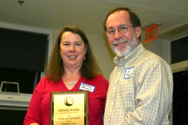In presenting the award, incoming Chair Bonnie England listed the numerous duties Debbie has taken on in her role as Chapter Treasurer. In addition to the expected bookkeeping she has taken on several more cumbersome and demanding administrative duties. Overseeing the registration for the Chapter’s Spring Fling and Annual Meeting, the two largest gatherings of the year, involves extensive organization and planning of many different activities. These events have been executed smoothly thanks to debbie’s efforts.