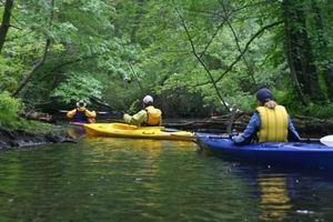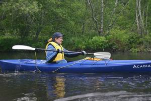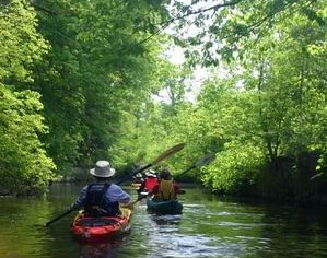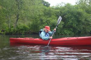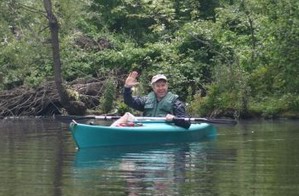The paddle starts with hardly any current, no wind and a wide berth along the edge of the golf course. Herrick led us past one lone swan who wandered around on the opposite side. The river twists and turns gently, becoming more forested and wild. No flowers were out today but enormous bouquets of poison ivy coated the banks. We went upstream for an hour or so until two blowdowns forced us to turn around. ![]() ![]() We limboed under low-hanging trees while floating back downstream. At the Club again, we walked our boats around the 4’ spillover and got back in. The lower part of this paddle is much more narrow with way more corkscrews. |
