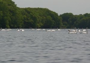 Linda got out of her boat to find deeper water and found a deer’s carcass, probably a casualty of thin ice. This area will definitely not be passable in the summer. ![]() Most of us elected to stay in our boats when we couldn’t find a suitable spot to stop for lunch. We ate to the cacophony of the biggest flock of swans any of us had ever seen - there must have been over 100. They kept their distance even while pretending not to see us. The only other sound was a pair of ducks overhead and the breeze rustling trees on all sides. We stayed there a long time, paddling through meadows of lily pads with yellow flowers, watching as the swans occasionally sparred and jousted. As crowded as this photo looks, it’s still only a small portion of the flock we saw. ![]() ![]() Only another ¼ mile was required to reach our cars, parked on the Newman Ave bridge. This paddler’s biggest treat of the day - besides the obvious ‘being in the kayak’ - was to find a great blue heron stalking fish at the water’s edge. He stood perfectly still, sometimes moving his pencil legs very slowly to advance forward without causing any ripples. Eventually he moved way under the tree canopy so I could no longer see him. Only then did I admit defeat and de-kayak.