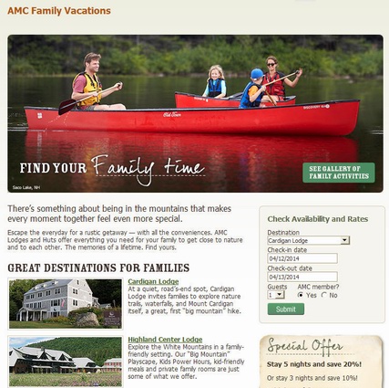 AMC programs offered for families and their teenagers. www.outdoors.org/education/family-programs