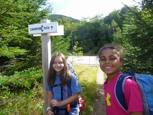 On August 22nd my daughters (8 and 10) summited their first “4,000’er” by hiking to the top of NH’s Mt. Jackson. Reaching the summit marked the achievement of an open ended goal my older daughter set a year ago after we discussed some of the hikes I had recently completed. Upon looking at the topographical map in the lobby of the AMC’s Highland Center, she said, “my first 4,000’er is going to be Mt. Jackson”. Two hours later, when I pointed out Mt. Jackson from the summit of Mt. Willard, nearly 2,000’ feet below Jackson’s summit, she visibly paled and re-considered her decision. We talked about it and agreed that it didn’t have to be done any time soon and that it was an excellent goal to have. The Highland CenterEarlier this year, while researching spring hiking options I saw that the Crawford Path could be taken to the Mizpah Spring Hut. From the hut, Mt. Jackson was a fairly level 1.6 mile hike away with a moderate ledgy climb at the end. It would be a stretch for the girls but definitely within their range. I discussed the route with them and they somewhat grudgingly agreed to add it to the itinerary of our annual pilgrimage to Clark’s Trading Post, Santa’s Village, and Story Land each August. The Crawford Path, cut in 1819, is the oldest continuously used footpath in the United States. The grade is constant but reasonable making it a good choice for children. To prepare for our ascent, we section hiked the Skyline Trail in Boston’s Blue Hills Reservation during the spring. hiked Mt. Wachusett with the girls’ grandparents, and generally stayed active through the summer. I was amazed at how much progress the girls made in such a short time. These were very different hikers than the ones I hiked with just the year before. The week of the hike we headed to NH and visited our usual spots. We saw the trained bears at Clark’s, visited Santa at his village, and retired to the Highland Center and its new outdoor inspired playscape each night. As much as it is a hiker’s destination, the Highland Center is a conveniently located and reasonably priced (wonderful food included) place to stay for any northern NH adventure, family or otherwise. Better yet, kids stay for dramatically discounted rates as part of the AMC’s effort to get more kids outdoors. The start of the Crawford PathAfter two nights at the Highland Center, we filled our bellies at the breakfast buffet, donned our packs and caught the Crawford Path right from the parking lot. The trip to the hut is about 2 miles and it climbs about 2,000’. Along the way we passed the remnants of a concrete dam, stopped at Gibb’s Falls, saw a field mouse, checked out a well camouflaged caterpillar, and tried to figure out why certain trees grew into the shapes they did. |