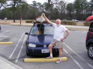 Winter is not what it used to be, seems colder as you get older. Heating oil price up, house temperature down. The snow is piling up. What to do? Too much snow!FLORIDA! EVERGADES! Now that sounded like a great idea, never having been to Florida, let alone the Everglades National Park. So several members of the Narragansett Chapter of the AMC decided to head south as soon as possible. As the weather continued to dump snow in Cumberland and other parts of the State, schedules were arranged and rearranged. Finally after the last large snow storm, planning was done and three of us were ready to go. Food was purchased for quick preparation. Kayak gear was sorted and weather conditions were monitored via the Internet for southern Florida. They were having a cold spell with lows in the 40's but it seemed to be warming up by the time we got our act together. We also wanted to avoid any pending snow storms on the way down that might be sneaking in from the west. Saturday night snow fall.We decided to leave on a Sunday morning to get through the New York, Washington, DC area on a less busy day. I stayed over at Ray's house on Saturday night and from there drove to Gary's house early Sunday morning to join with him and head south. Gary and Ray went in Gary's van and I in my VW. Kayaks were lashed front and back to prevent any problem if we encountered storms going down. As it was, it snowed on Saturday night and we had a 2 inch dusting of snow for the exit of Rhode Island. We took the direct route south using Rt 95 most of the way, only diverting to use the Merritt Parkway in CT and the Tappan Zee bridge to get to the Garden State Parkway. We used a few belt-line routes around the big cities and the Florida Turnpike to avoid Miami. The driving distance was about 1600 miles and since we stopped at a reasonable time to get an economical (that is relative to the location) motel and supper, the trip took 4 days. We may have left in the snow, but by the second day in North Carolina the temperature was up to 80 degrees and I went to shorts and tee shirt. Why didn't I think of this sooner?We arrived at the Everglades Park entrance Wednesday afternoon. So far the Everglades were not looking like I had expected. Looked like grassland with palm trees scattered around. Certainly was not jungle like, and when we pitched our tents in the walk-in campground at Flamingo, there were no flocks of birds or swarms of insects. The grass was mowed and we had tons of room. Best of all was with the Golden Age Passport, the entrance fee was reduced to a fee for my kayak, and my campsite was only 1/2 price at $8/day. And sites on waterfront property no less. Walk-in campsites at Flamingo campground.The weather was absolutely perfect. Daytime temperature was about 80 degrees and nighttime about 60 degrees. The air was relatively dry and not sticky hot, and the breeze during the day kept bugs away. Ranger Sara with python skin.We checked out the Visitors Center for paddling options and got some ranger talk about the local animals from Ranger Sara. The wind was picking up pretty strong in the bay the next day and we decided to stay in the campground and explore the inland options, before we went wilderness camping in the kayaks. We decided that the canal next to Flamingo would be an easy paddle. None of us had paddled since last November. We launched from next to the campground area at the only place that was not soft clay-like mud. When we reached the Flamingo marina we found out that the only way into the canal was over a dam that regulated the water levels in the lower Everglades. Local crocodiles at canal dam.So it was a quick portage up and over the dam to the other side. The dam on the upside has two resident crocodiles which were basking on the other bank. The canal was long and straight, and quite bland with mangrove trees along the sides and only a few ducks along the banks. Certainly not jungle like. The only resting place was a dock at the end of an access road, and that is where we had lunch. Farther up the canal was Coot Bay, a large shallow in land lake. |