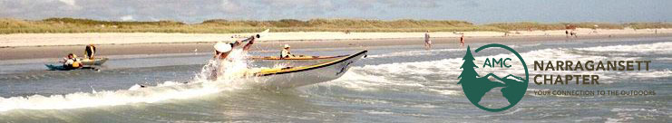The Chapter Sea Kayaking committee has available four fully equipped sea kayaks and a recreational kayak for rental, including paddles and life vests. (The Flatwater committee has more recreational kayaks as rentals.) The rental rates are $8/day which goes to misc. expenses for the recreational kayaks. We keep the rentals cheap because the purpose not to make money (obviously not to cover the cost of the kayaks) but to get members acquainted with sea kayaking if they are considering buying their own sea kayak. If you have previously rented our recreational kayaks and think that you are ready to try out a sea kayak, now you have a chance to expand your capabilities and experience a faster smoother paddle while enjoying the social atmosphere of the AMC kayakers. For members who have paddled sea kayaks but don't have their own kayak yet, now you can join our paddles.