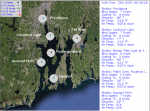 This is the home site for the Quonset Point Physical Oceanographic and Meteorological Real-Time data. Other Stations in and around the Bay also have the similiar collections. There are quick links to all the nearby stations, and each station has extensive data pages available. Links are available to detailed graphical data for most parameters in a 72 hour window. CO-OPS is consolidating the PORTS® pages into a more universal format as part of an upcoming PORTS® product enhancement. The web address (URL) for a specific PORTS® location will change accordingly when the pages are migrated to this new format. Because Google Maps are used, the site will come up slowly on dialup access. |