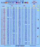 Rhode Island tidal data in chart form, showing RI Hi/Lo/Sunrise/Sunset predictions for the current month and 5 months ahead, can be found at the USHarbors site. Links are available for tides in Connecticut, Massachusetts, and New Hampshire. |