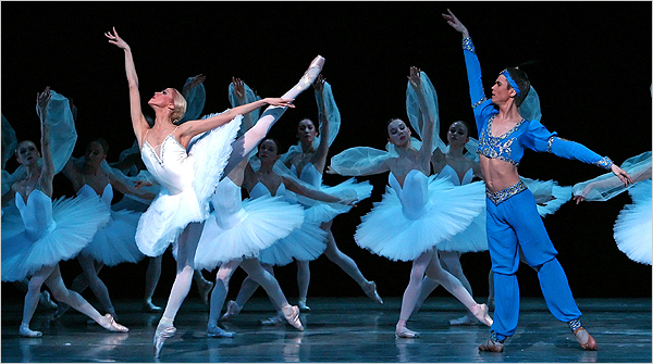 Set in India, La Bayadère: The Temple Dancer is the visually stunning story of a temple dancer and her lover. This is one of the greatest 19th century ballets, highlighted by the Kingdom of Shades scene, one of the most mesmerizing and difficult classical performances in all of ballet. For a description of the creation and plot see the ballet encyclopedia. Read the pre-review of the Boston November 2013 production and a post-review. In all versions, music by Ludwig_Minkus, original choreography by Marius Petipa, but additional contributions in later performances.