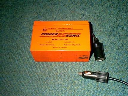 The battery is a standard GelCell type sealed lead acid battery. These are typically cheaper than a similarly rated Ni Cad battery. It must be a 12 volt battery (because of the 12 volt halogen bulb used) and of the size (6” x 2 1/2” x 3 3/4”) as seen in the photo. Typically rated for 6.5 to 7.2 amp hours. I found mine at a local electronics flea market for about $6 used. Typically this is the standard size used in commercial emergency lights and are replaced every year to meet fire codes. That means that in general they are unused and have been on trickle charged for a year. New they are about $18 to $25 new from industrial supply houses.