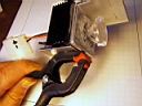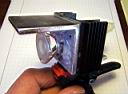 The light uses the same power supplies as prototype 3, either 4 NiMH rechargeable AA batteries, or a 6 volt lantern battery. To make the unit smaller, and since it weighs so little, I used a 2” plastic clamp instead of the 4” clamp in the previous prototypes.