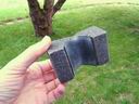The two above photos show the cut plastic polyethylene foam block with the a section of bike innertube (contact cemented) in the bottom groove, which gives grip to the handlebar.