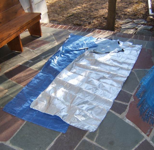wind. Therefore making a emergency blanket from vinyl/polyester tarp material is just about as good. If you want radiation protection,