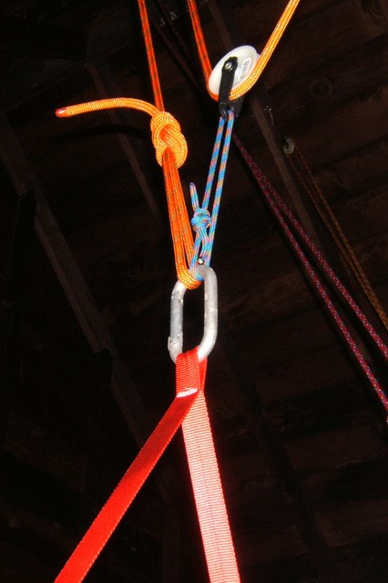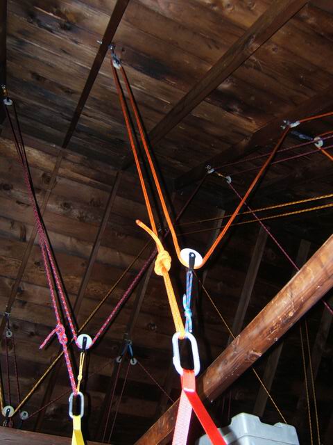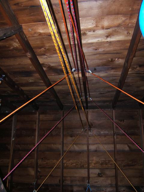 rafters. In those cases the ropes have been routed through more