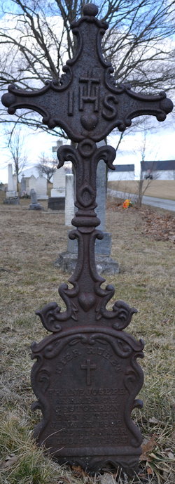 The two iron grave markers for Franz and Agatha Krabach in middle of photo. (Click Google photo to enlarge.)