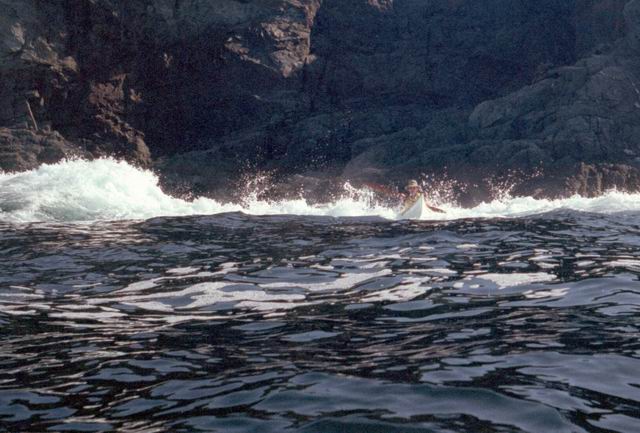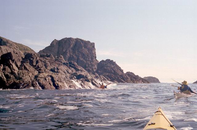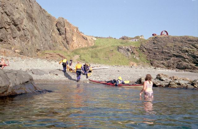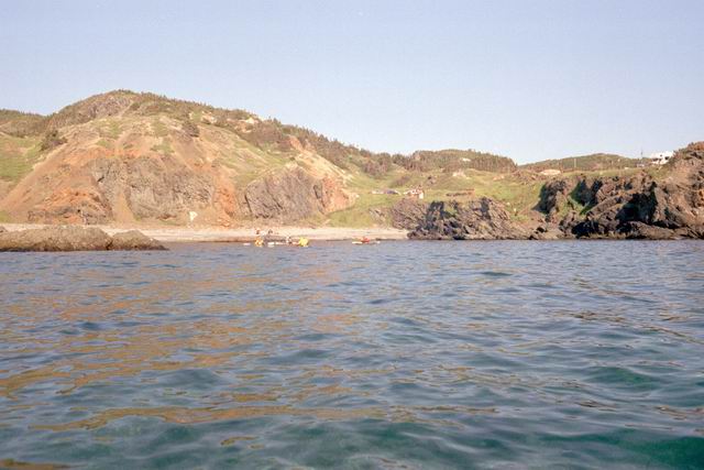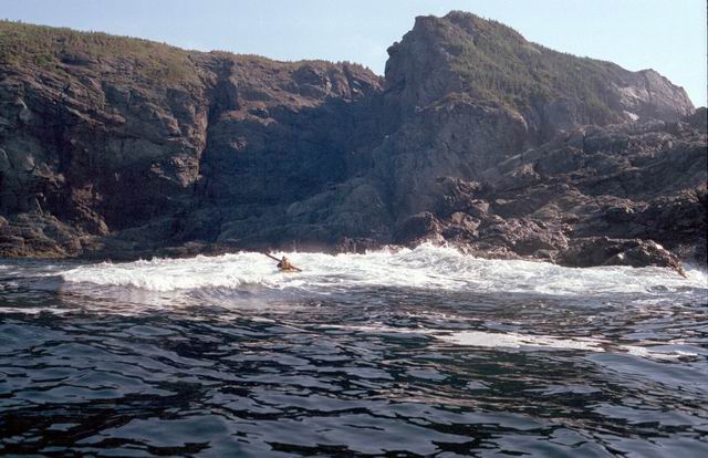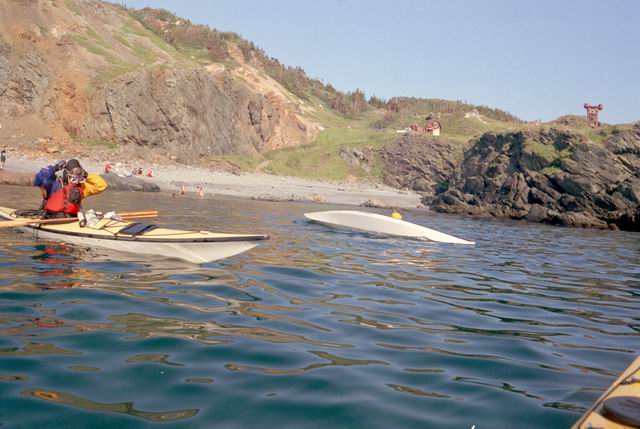 The first 9 photos show John as he continues to paddle his way out of a large swell that broke twice before he got into deeper water. All in all, he probably would do it again if he could. According to him he would do it better the next time. But there was no next time and we paddled around Long Point (photo 03crop20.jpg) and back into the launch beach. There Wayne and Judith rolled a few times to the acclaim of the kids on the beach. We then drove into Twillingate for supper. The harbor and evening were completely calm with temperatures in the low 70's.