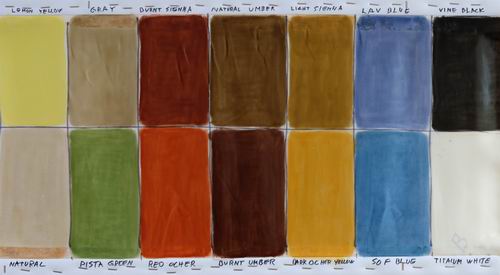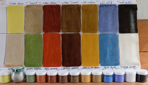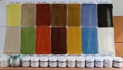 | Earth Pigments comparisons in preparation of painting the cloth skin of a Greenland Kayak. www.earthpigments.com |